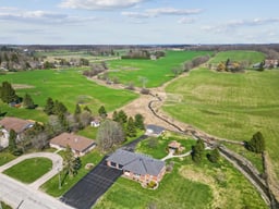 This beautiful red brick bungalow offers a rare combination of functional workspace and serene natural beauty on a full acre lot featuring a private stream. Located within the scenic landscape of Grey Bruce, this property provides the quiet of country living with easy access to the amenities of Owen Sound and the shores of Georgian Bay. The home is designed for hobbyists and car enthusiasts, featuring an attached heated three car garage configuration. The upper level accommodates two vehicles with direct access to the main floor, while the lower heated garage provides space for a third vehicle plus significant additional storage and an entrance to the lower level. A separate 529 sq. ft. heated workshop with running water and a dedicated garage door offers even more utility for large scale projects and storage. Inside, the main level features rich hardwood floors and a kitchen renovated in 2018 equipped with quartz countertops, stainless steel appliances including an induction stove, and a french door fridge. The primary bedroom serves as a dedicated retreat with custom cabinets, pocket french doors, and a three piece semi ensuite. Practicality is built in with main floor laundry and premium Hunter Douglas blinds throughout. The lower walkout level is built for comfort and guests, centered around a large family room with a gas fireplace stove and a high quality wet bar. This level includes a second spacious bedroom with its own three piece semi ensuite bathroom. Both bathrooms in the home feature heated tile floors for added luxury. Outdoor living is elevated by a large composite deck with glass railings, providing unobstructed views of the backyard and adjacent farmers fields. This is a well maintained, versatile home that balances hobby space and relaxation perfectly.