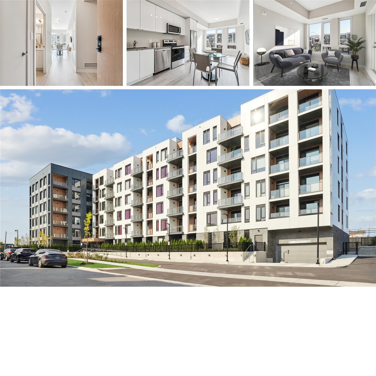 Enjoy the open-concept layout with a spacious great room that flows seamlessly into the kitchen and out to your private, generously sized balcony—perfect for morning coffee or evening relaxation. The stylish kitchen offers white cabinetry, grey quartz countertops, and premium stainless steel appliances, including a fridge, glass cooktop with over-the-range oven, microwave, and dishwasher.